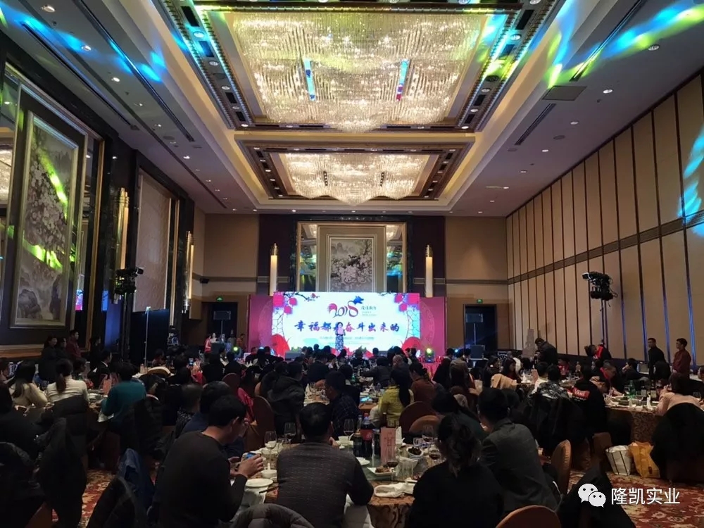 2018年2月12日,隆凯集团年会在宁波香格里拉大酒店盛开启幕。本次年会以“幸福是奋斗出来的”为主题。一百三十多名隆凯人齐聚一堂,现场掌声笑声不断,活力四射,同时也凝聚了诸多令大家津津乐道的经典片段、时刻,香格里拉年会盛宴上高朋满座,金碧辉煌。