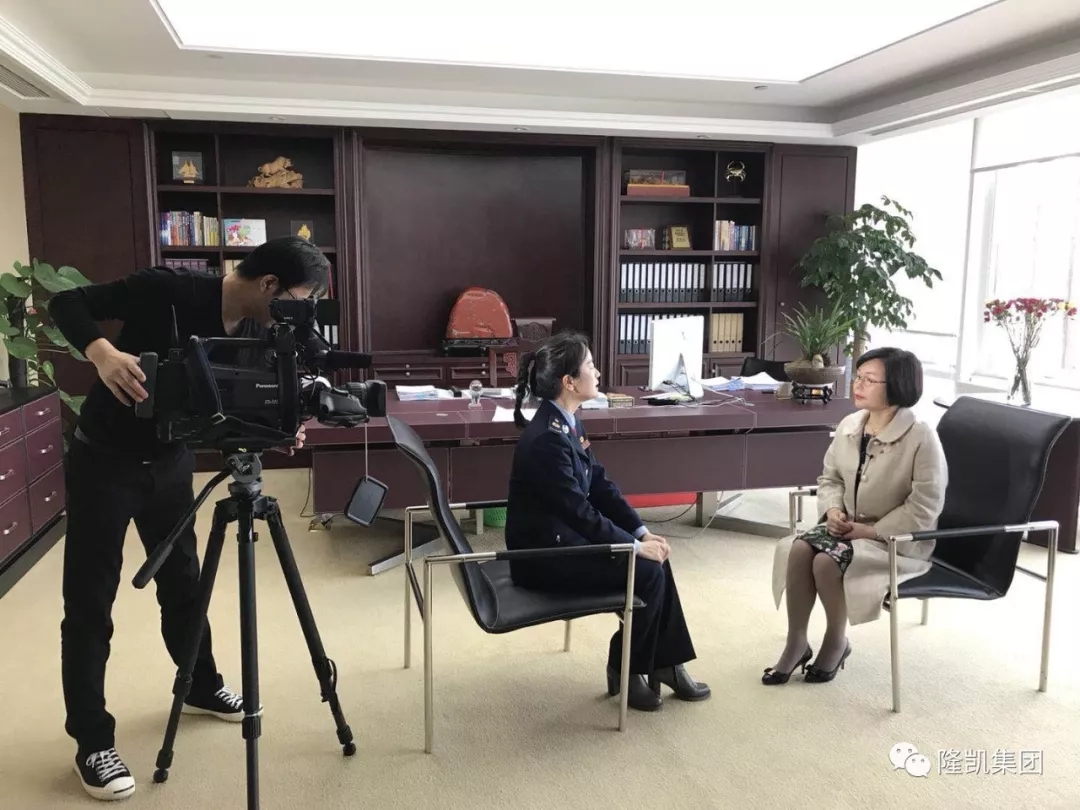 2018年3月14日上午,鄞州区和高新区国税局共同举办“送春风行动”,联合鄞州日报全媒体中心、高新区电台两家媒体,特邀两会代表隆凯集团董事长邬瑛荻女士进行现场采访报道!
